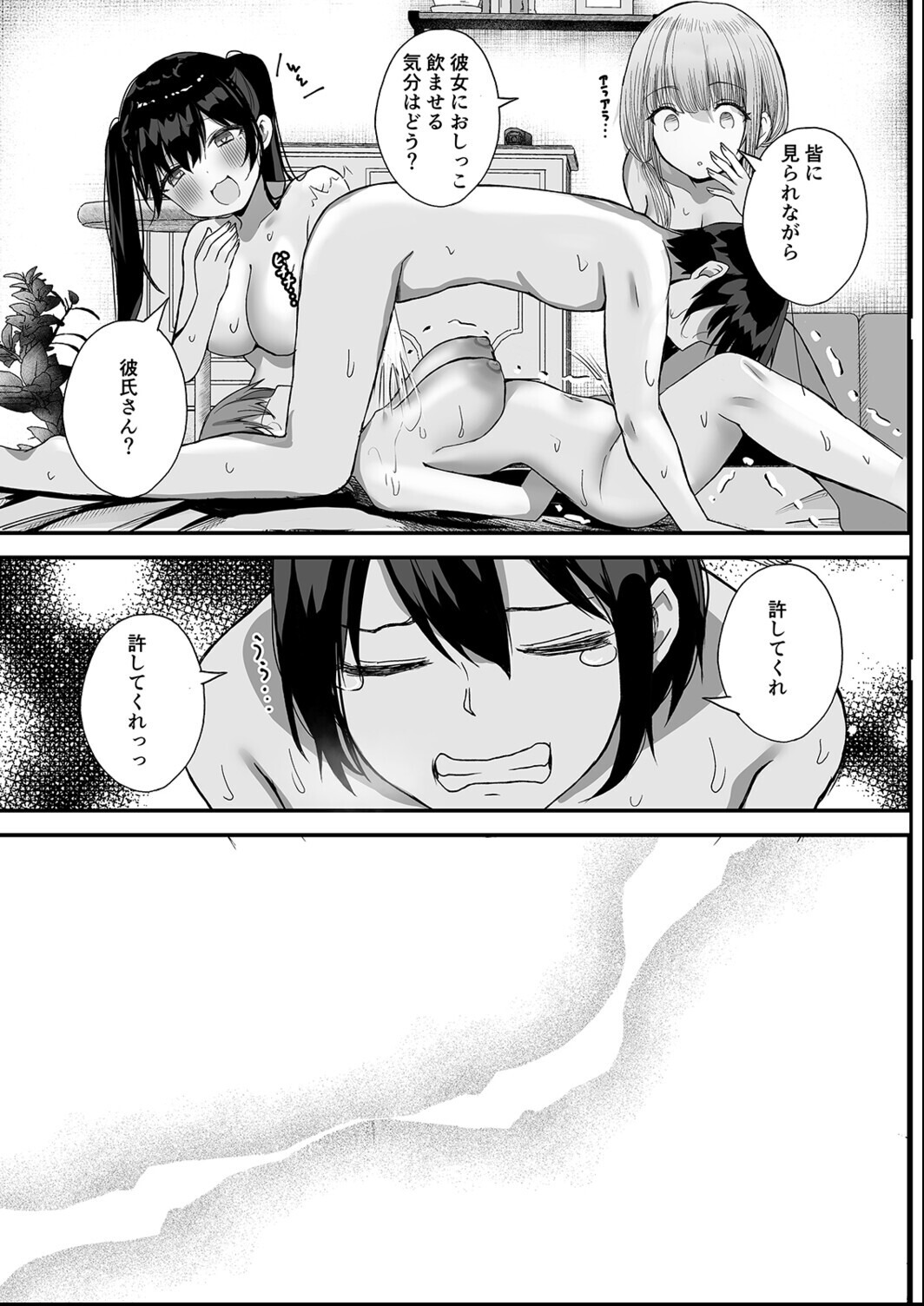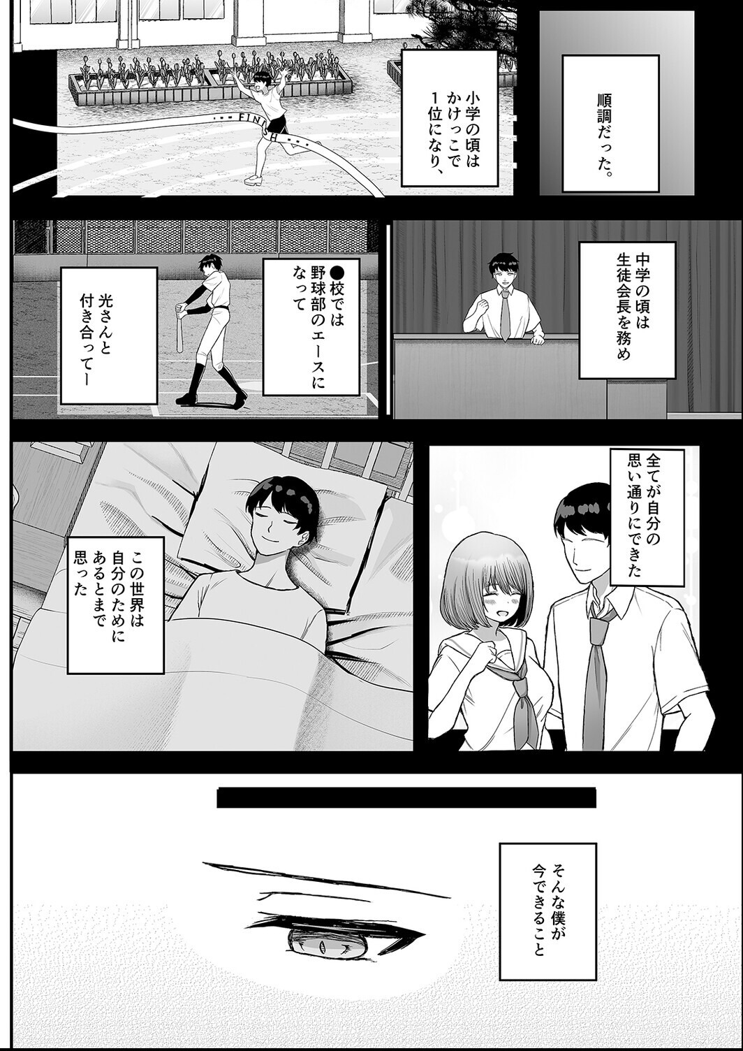 俺の彼女・光さんは明るくて可愛い学校のアイドル。ある日デートをしていると、首輪がついている女子を2人連れた不良のテツと出くわす。光さんを守るため立ち向かうが、なすすべもなくホテルに連れ込まれる俺たち。「あなたとは付き合えません」光さんの言葉を聞いたテツは俺たちの愛を確かめると言い、おもちゃを使って試してきて…。初めは我慢していたけれど、だんだん快楽に流されていく光さんのカラダ。そして、次イったら光さんの処女をもらうとテツに言われてしまい…!?