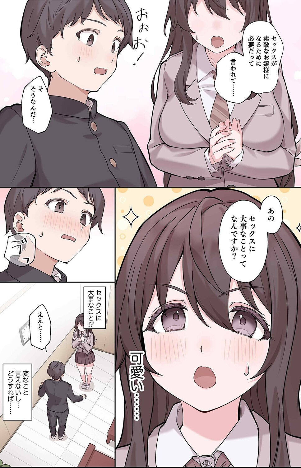 「セックスが業務」というシチュエーションコメディの枠組みが明確で、ストーリーとしての軸がブレていない。タテヨミ形式において縦スクロールを意識したコマ割りが施されており、読者をエロシーンへ誘導する構成が機能していると言えよう。