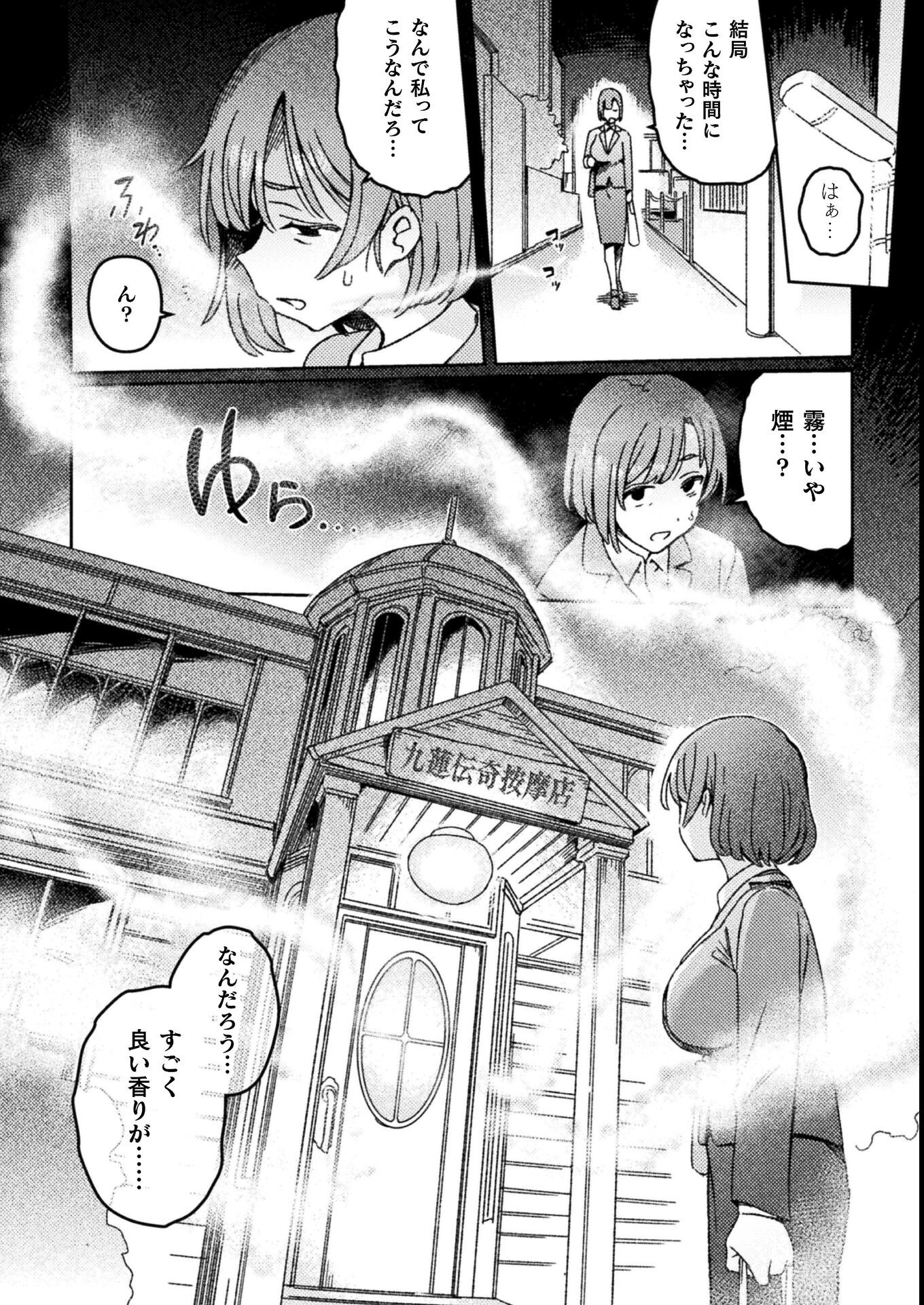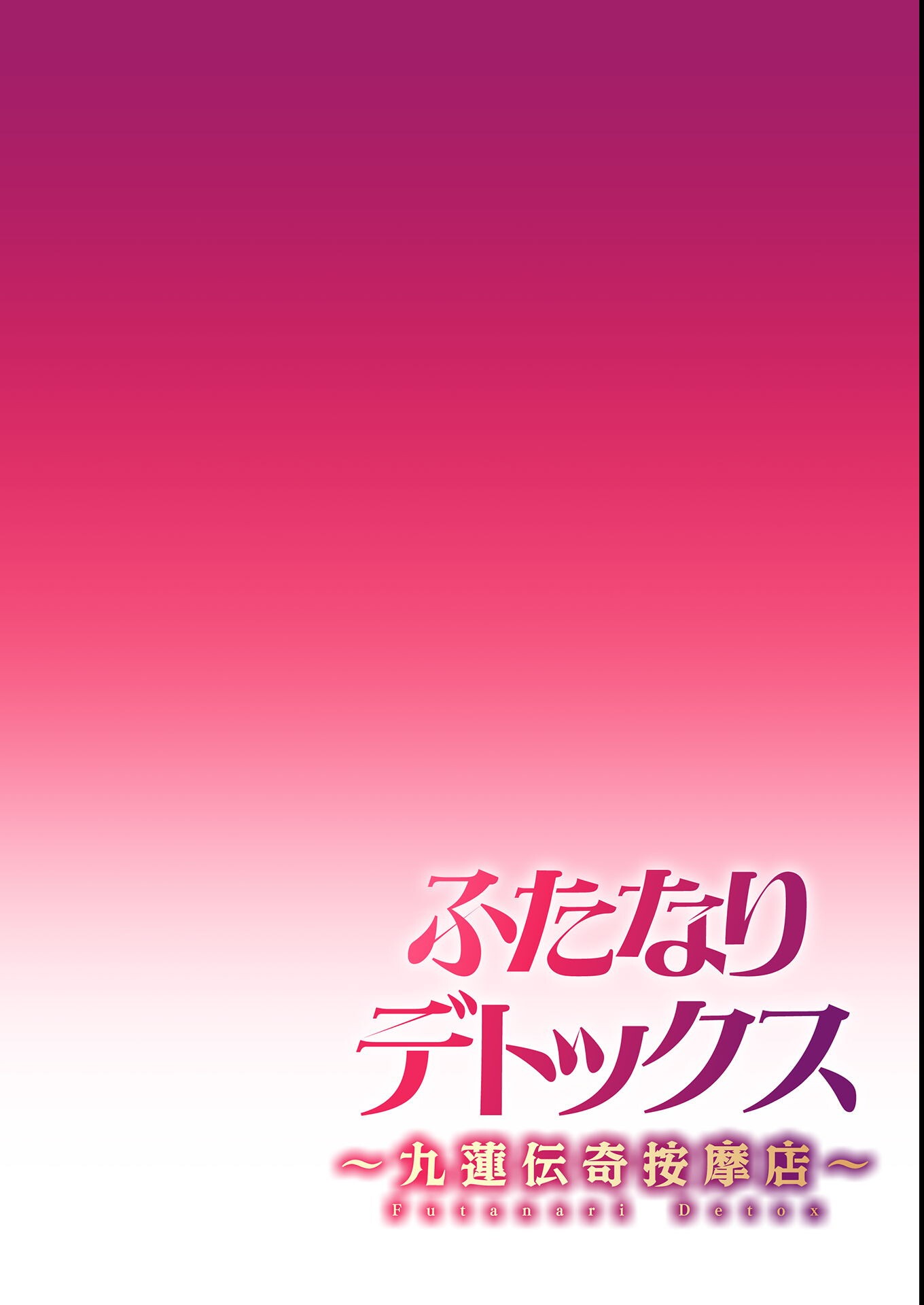 【電子書籍描き下ろし!】 パワハラ上司に日々悩まされている蛙石千秋は、 退勤後に九蓮入沙と名乗る胡散臭い女と出会う。 手を引かれ、半ば強引に『九蓮伝奇按摩店』へ連れて行かれると 最近上司に悩まされていることをズバリ言い当てられる。 入沙曰く、人には『生液』という生命の源があり、 それが濁ることで『ユガミ』となって心身に害を及ぼすらしい。 流されるまま施術を受ける蛙石だったが、 その股間には突如として巨大な男性器が顕現して…!? 指圧按摩でじっくりと搾り取られ、騎乗位で『濁った生液』を排出させられる。 さらに入沙の股間にも顕現した巨大な男性器を挿入され、 『濁った生液』を最後の一滴まで搾り取られると…? ふたなりデトックスマッサージが極上の解放へと誘う。 今日もまた、悩める女性がその扉を開く――。