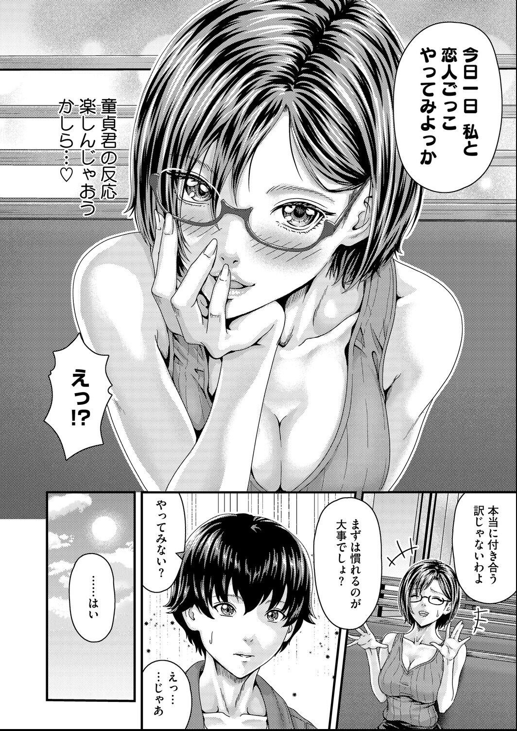 タイトスカートに眼鏡のお姉さんが草食系男子を恋人ごっこに誘うって設定がたまらないよね。弐藤にと先生の描くお姉さんキャラは色気があって、余裕のある態度で童貞を翻弄する描写が上手い。フェラの寸止めで焦らすテクニックとか、経験値の差を感じさせるのがリアル。220円で手軽に楽しめるし、お姉さん好きならハズレないよ