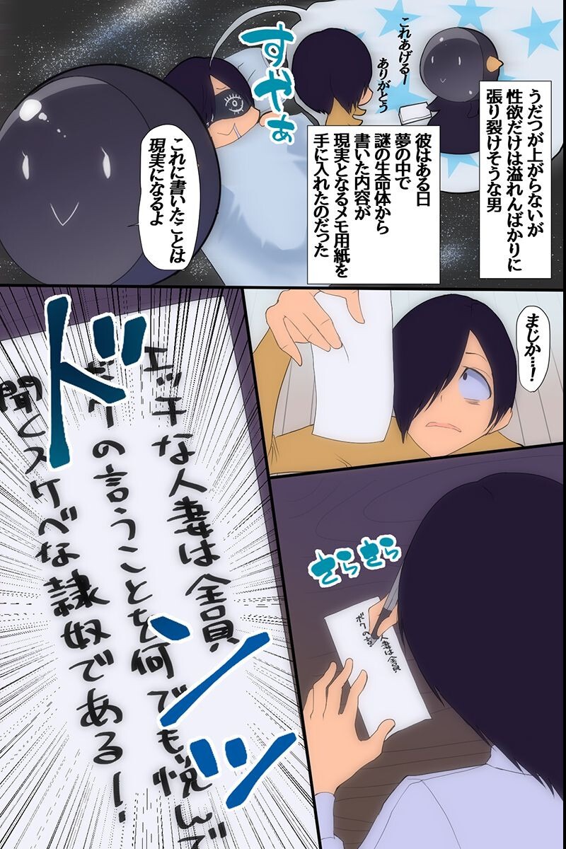 うだつは上がらないけどエッチな欲だけは有り余る男がある日手に入れたのは「書いたことが現実になるメモ帳」。当然、考えるのはエロいことばかり。「人妻は全員、僕の言うことを何でも聞く」と書き込んだ途端、世界が変わった。気が強い爆乳ポニテ人妻の真央と、おっとり系ロングヘアの美人妻の豊岡が、すっかり主人公に従うメスに変貌。さっそく三人で温泉旅行へ。目的はもちろん、爆乳妻二人を思う存分味わい尽くすこと。旅館に着くなり、受付の前で二人の豊満な身体を揉みしだき、乳首を舐め回す。唖然とする受付の爺さんの目の前で「温泉の受付係とはエロプレイをするのがマナー」とメモに書き込んで貼り付けると、真央がにこやかに爺さんの股間を握る。ねっとりとした手コキで精液を搾り取ると、爺さんは若い女に扱かれてビクビクしてしまう。爺さんも満足して、快く宿泊を許可してくれた。土産物コーナーでは浴衣の胸元がはだけて、爆乳の谷間が丸見え。ムチムチ太ももが裾から覗く姿に、ナンパ男たちが群がってくる。面白がった主人公は「男性客にはメス奉仕してザーメン搾り取るのがマナー」と書き込むと、強気な真央もすぐに言いなりになった。浴衣を脱ぎ捨てて全裸になり爆乳を揺らしながら、硬くなった男たちのソレを交互に握りしめ、舌を這わせてじゅぽじゅぽと音を立ててフ○ラ。興奮で腰を振る男たちに「挿入はダメよ」と微笑みながら、手コキとフ○ラだけで何度も射精させる。悔しがる男たちをよそに人妻たちは口いっぱいに精液を溜め込み満足げにごっくん。そう、本番は絶対に許さない。なぜなら、この二人の熟れたま○こにハメれるのは僕だけだから。・常識改変メモ帳で爆乳人妻二人をヤりたい放題できちゃう温泉ハーレム・受付前で真央さんの手コキ奉仕、飛び散る精液を笑顔で受け止める・土産物コーナーで全裸ヌード披露。ナンパ男たちに手コキ&フ○ラでザーメン搾取・挿入は僕だけの特権。周囲の男たちは悔しがるばかり・男湯乱入でAV女優さながらの公開セックスショー&母乳噴射騎乗位・他の男に母乳吸わせた豊岡は痙攣失神するまで正常位ピストン・真央には立ちバックで尻を叩きながらアヘ堕ちさせて子宮に連続射精・二人同時に乳首を摘まみながら交互に生出しまくり、精液はおま○こから溢れ返る。常識を書き換えられるメモ帳一つで、爆乳妻たちは僕の言いなり!温泉の湯船の中で爆乳が揺れ、母乳と精液が混じり合う、常識改変ハーレムをお楽しみください。フルカラーコミック